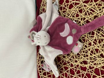 Doudou plat dragon rose mauve Victoria NOUKIE’S Noukies lune étoile cheval attache tétine