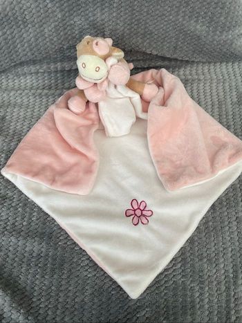 Doudou plat couverture vache Lola rose blanc beige fleur Noukie’s
