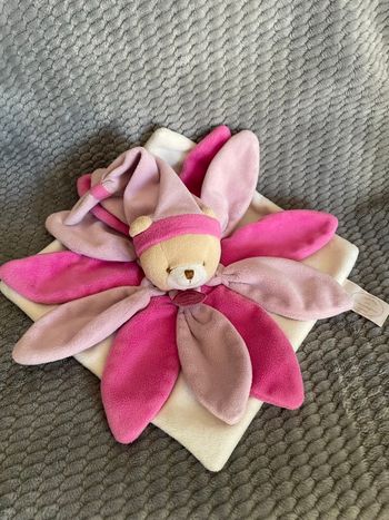 Doudou plat ours pétales rose violet Collector DC2793 Doudou Et Compagnie
