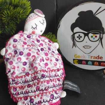 Doudou orchestra Premaman Tortue Rose Plat Rond Blanc Oiseaux #geektradedoudou