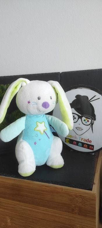 doudou peluche lapin magidoux phosphorescent blanc bleu baguette magique Violet