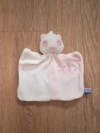 doudou sucre d'orge fille mouchoir fleur coeur rose blanc robe marron Couette