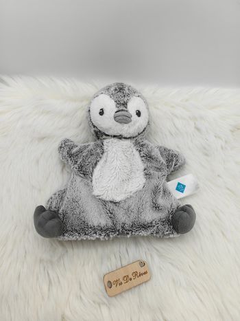 Doudou peluche marionnette Pingouin Tex Baby gris blanc