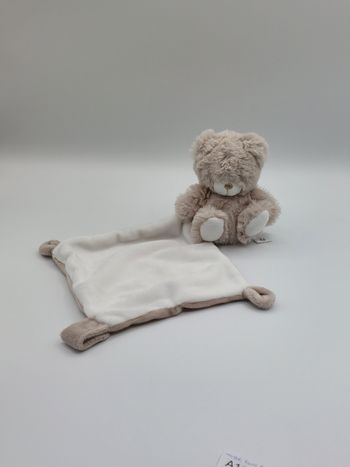 Neuf doudou plat losange ours blanc crème tex baby