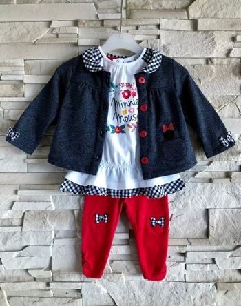 DISNEY - NEW - ENSEMBLE 3P BÉBÉ FILLE MOTIF MINNIE, TONS PAILLETÉS & VOLANTS 9M