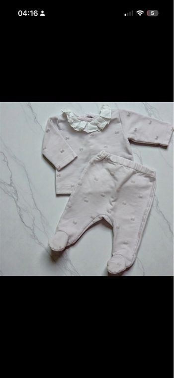 Ensemble bébé Jacadi – 3 mois – rose (haut + pantalon avec pieds)
