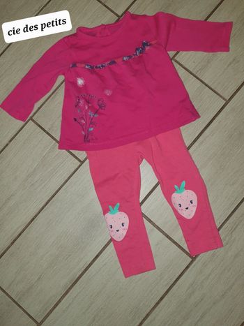 Superbe ensemble La Compagnie Des Petits, rose fuchsia, legging et tee-shirt manches longues, 3 mois