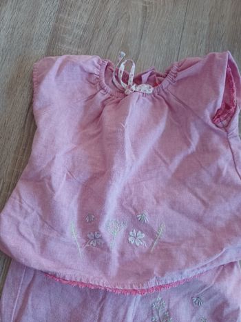 Ensemble été (salopette short+tee shirt manches courtes) 100% coton lapin+cœur Fille 6 mois Tissaia