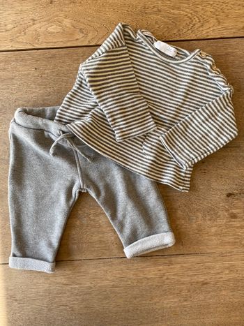 Salopette longue en jean Zara 6 /9 mois haut marque inconnu 6 mois peu portes Vendu ensemble