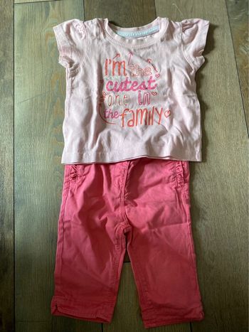 Ensemble 2 pièces bébé fille Tshirt Mc blanc corail legging T3mois TBE orchestra