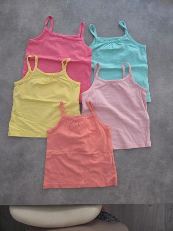 Lot 5 débardeurs fine bretelle bébé fille 100%coton T12mois TBE orchestra