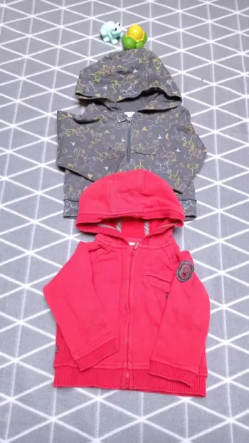 🦁 Lot 2 gilets zippés à capuche, 6 mois garçon