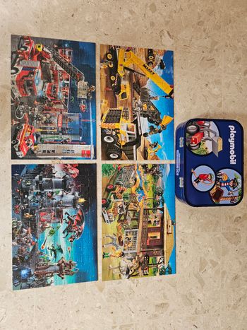 Puzzle Playmobil x4, chantier, chevalier, safari, pompier