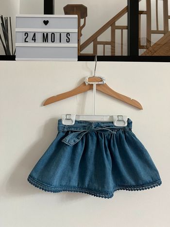 Jupe en jeans, rebord en dentelle, ceinture - Taille 24 Mois