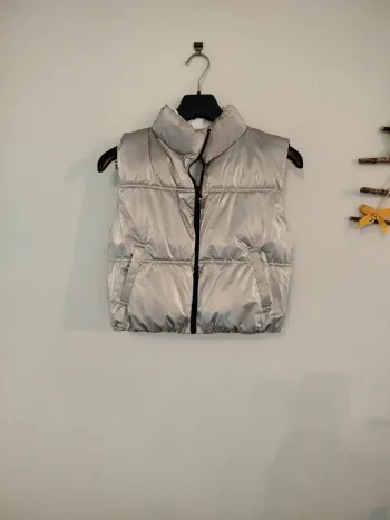 Manteau gris gilet épais hiver neuf gemo taille 6 mois blanc gris paillettes