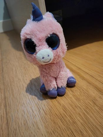 Doudou peluche TY lama blanc cassé yeux brillants bleus 28cm de haut environ