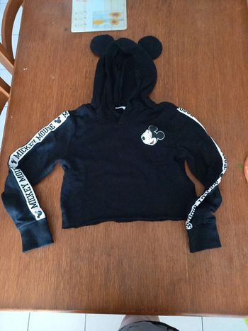 Sweat avec capuche couleur gris motif bleu et rose taille 10/12 ans h&m