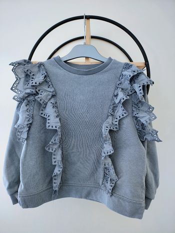 8 ans pull sweat a volant et dentelle Zara bleu/ gris