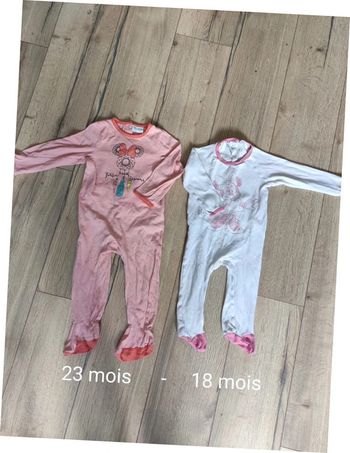 Lot de 2 Pyjamas Kiabi & Disney 18 mois - Très Bon État - Rouge et Rose