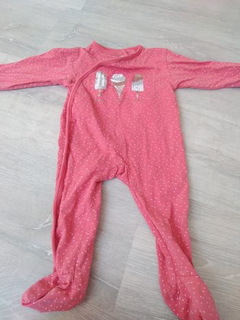 Pyjama grenouillère velours rose à pois 6 mois Grain de blé