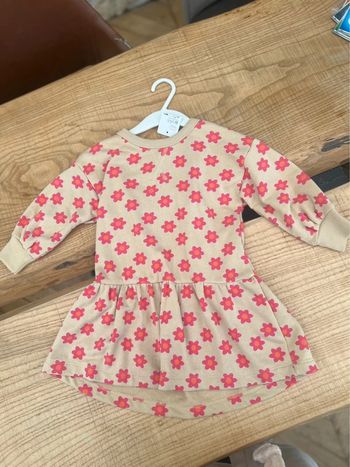 Robe 2 ans neuve étiqueté neuf sweat fleurs beige rose Marguerite