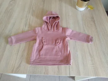 Sweat à capuche Okaïdi 8 ans rose clair avec inscription en relief