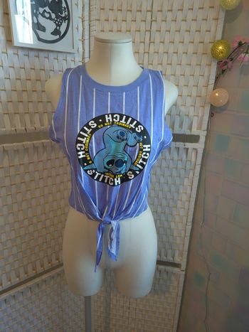 Joli top crop Disney Stitch Undiz femme XL / 42 bleu rayé