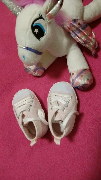 Chaussures / tennis en toile rose bébé 3 mois taille 18 - neuves