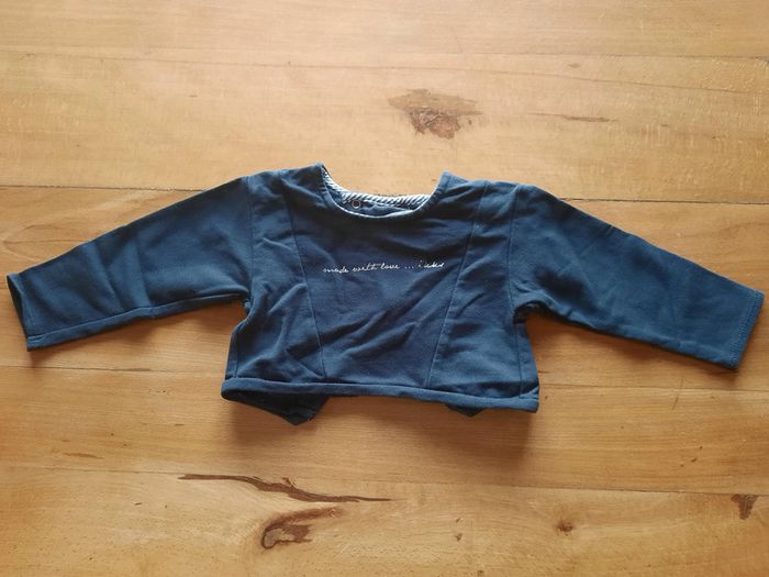 Gilet sweat Ikks. Taille 12 mois/74 cm. Fermé par 2 pressions au dos. Matière 72% coton, 25% polyester, 3% élasthanne. #ab8573_12moisfille