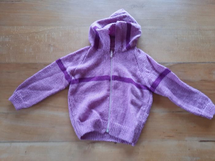 Gilet en laine à capuche tricoté main neuf jamais porté. Taille 6 mois. #ab8573_6moisfille