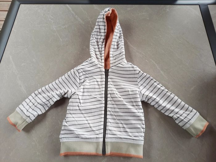 Gilet-sweat réversible Ikks à fermeture zippée. Coloris orange chiné. Taille 2 ans/86 cm Matière 57% coton, 43% polyester. #ab8573_2ansgarçon