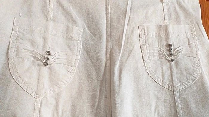 Jupe Longueur genou Femme Taille 40 Sans marque Ceinture qui peut s enlever Couleur blanc Tres bon etat Manque juste une perle sur une poche derrière (voir photo