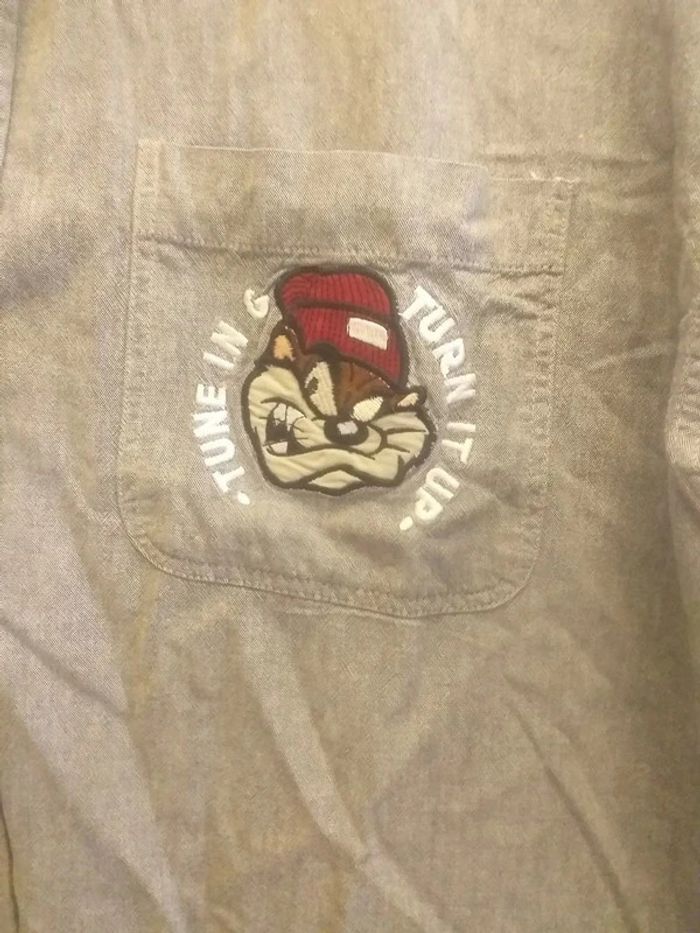 Chemise Homme Taille l Manches longues Couleur grise Marque warner bros Motif sur la poche Tres bon etat