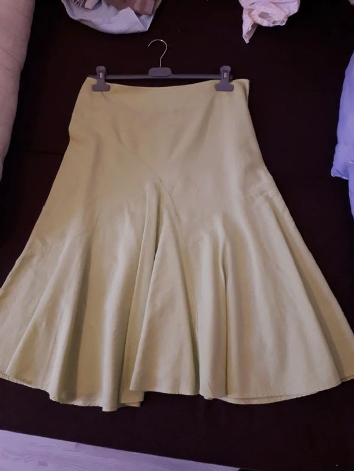 jupes mi-longues (genou) femme couleur vert pomme marque Camaieu 55% lin 45% coton taille 42 tres bon etat