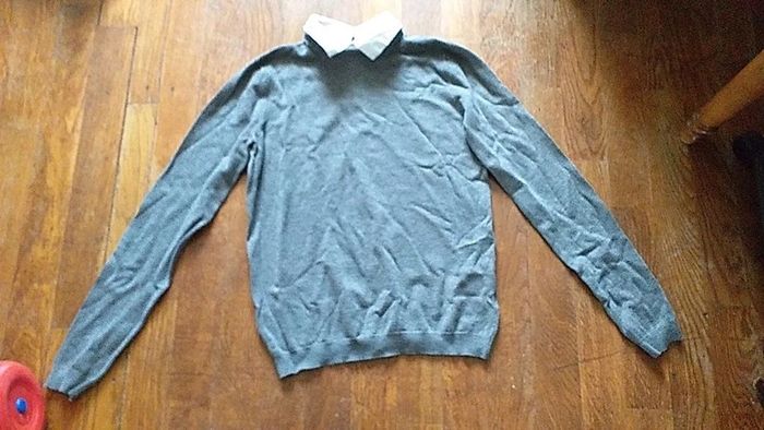 Pull léger Couleur gris Col chemisier couleur blanc Femme Marque la redoute Taille 36 Tres bon etat