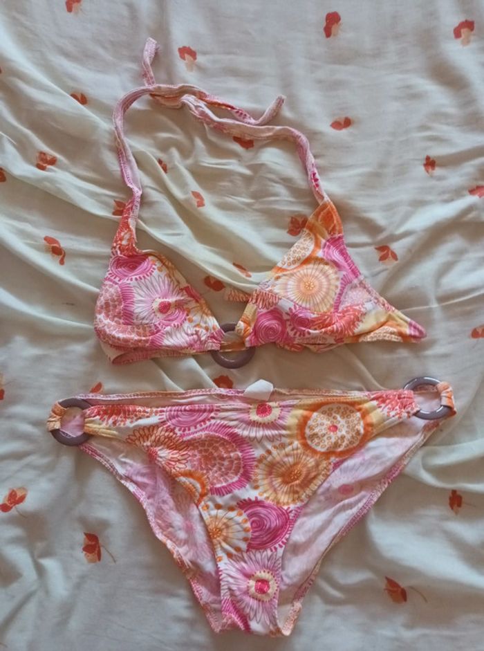 maillot de bain 2 pieces femme taille 2 sans marque couleur blanc motifs soutien a gorge rembourré bon etat