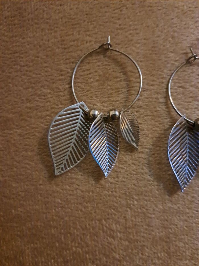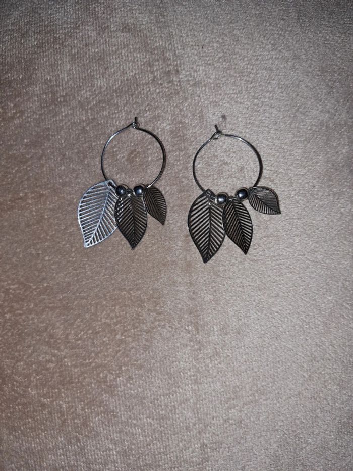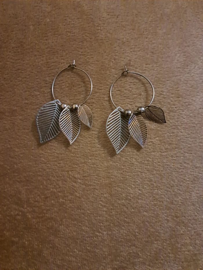 #pitchoune711bijoux Paire de boucles d'oreilles Couleur argent 3 feuilles de taille différente État neuve