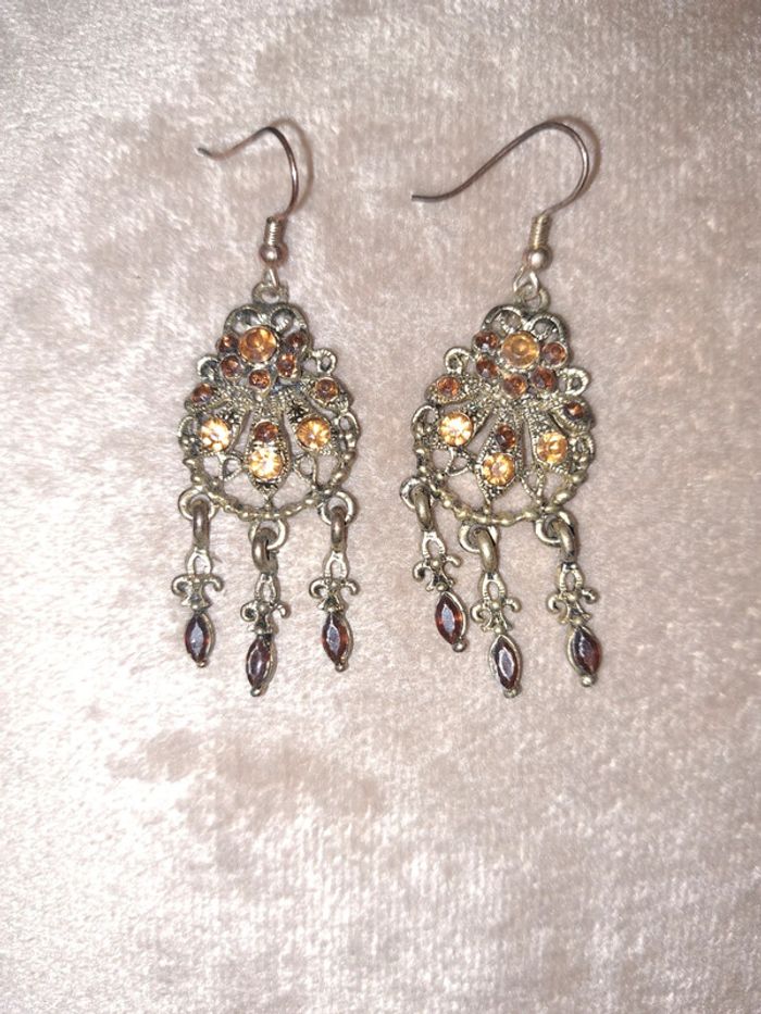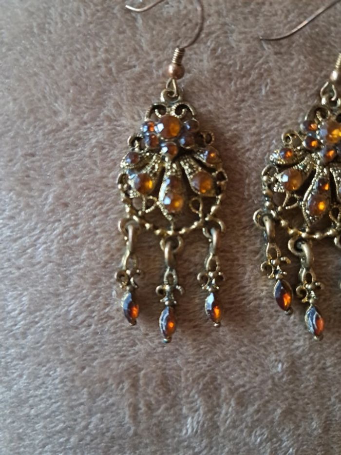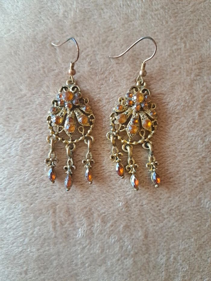 #pitchoune711bijoux Paire de boucles d'oreilles femme Couleur dorée Pierres orange État impeccable