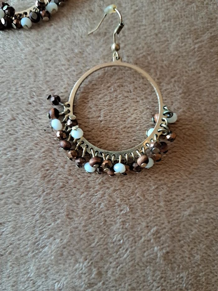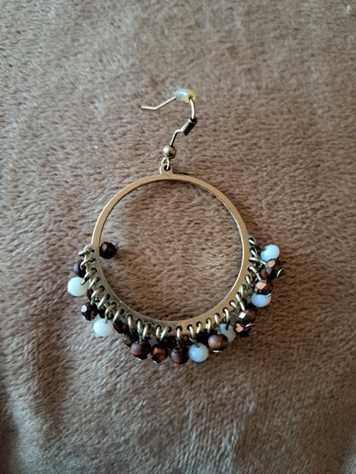 #pitchoune711bijoux Paire de boucles d'oreilles femme Couleur dorée Perles de couleurs marron et blanche État impeccable