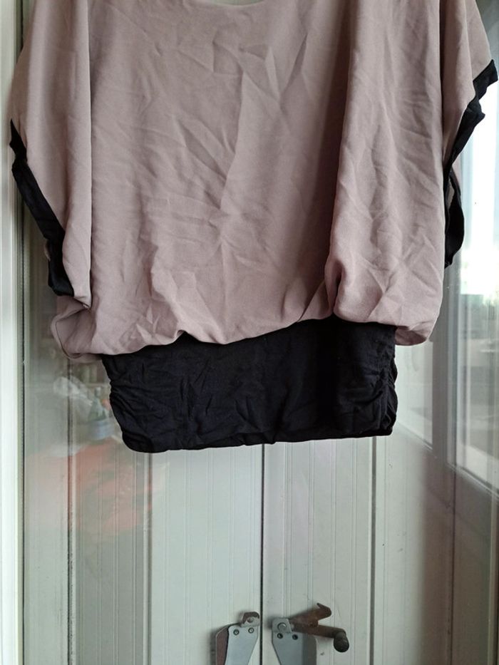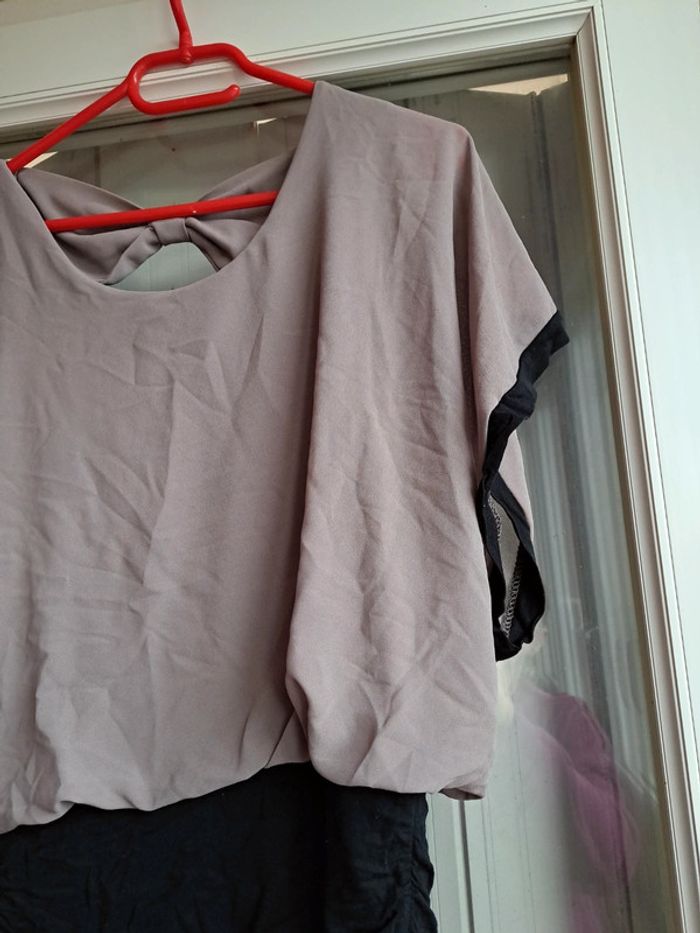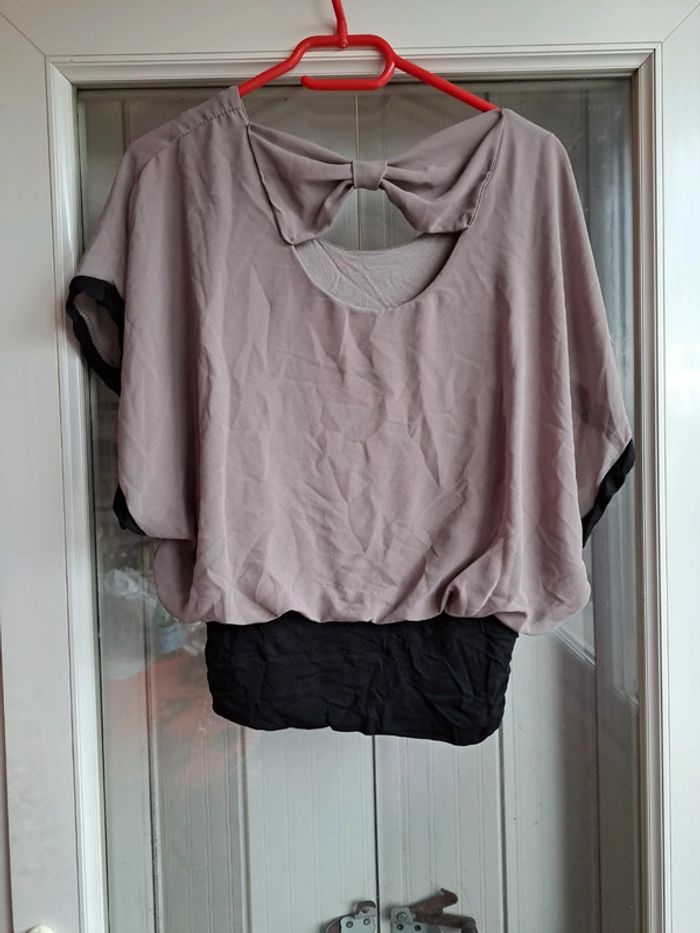 #pitchoune711femmetu Top femme Taille unique Couleur kaki et noir Manches effet chauve-souris Petit nœud dans le dos État impeccable
