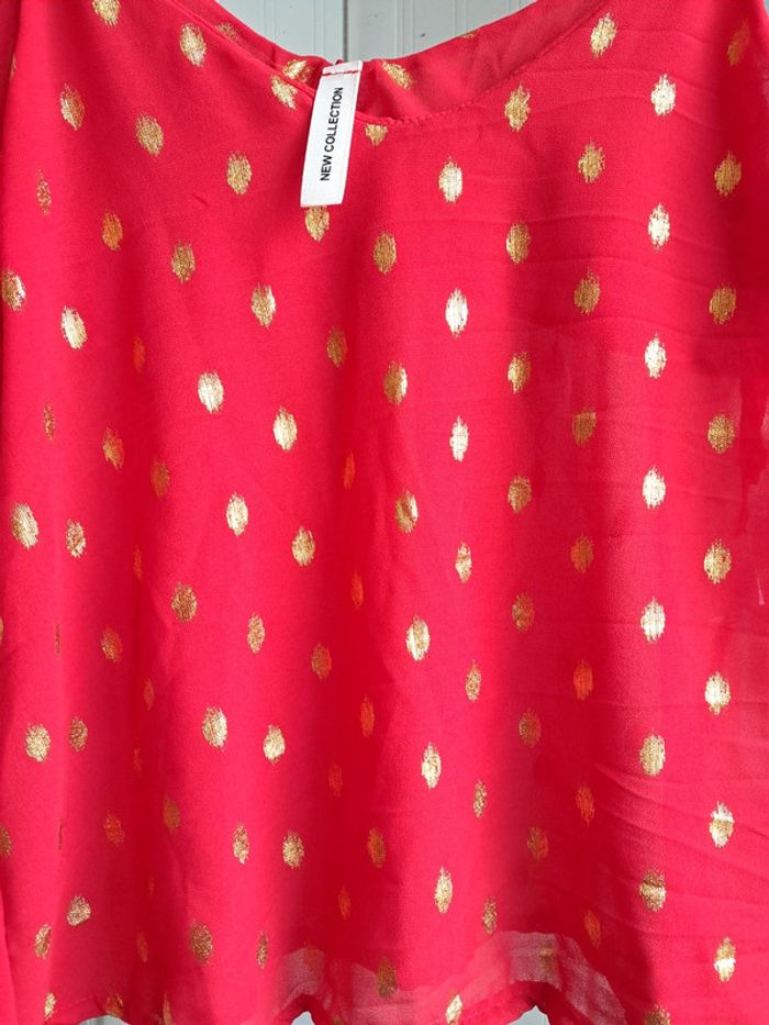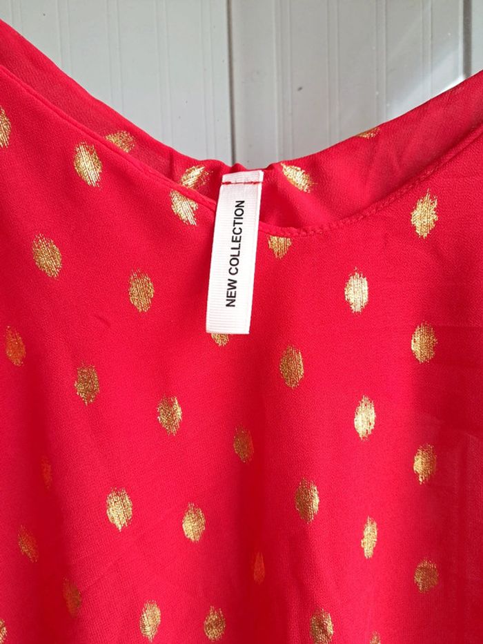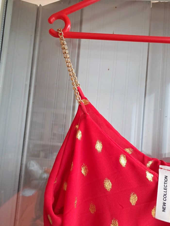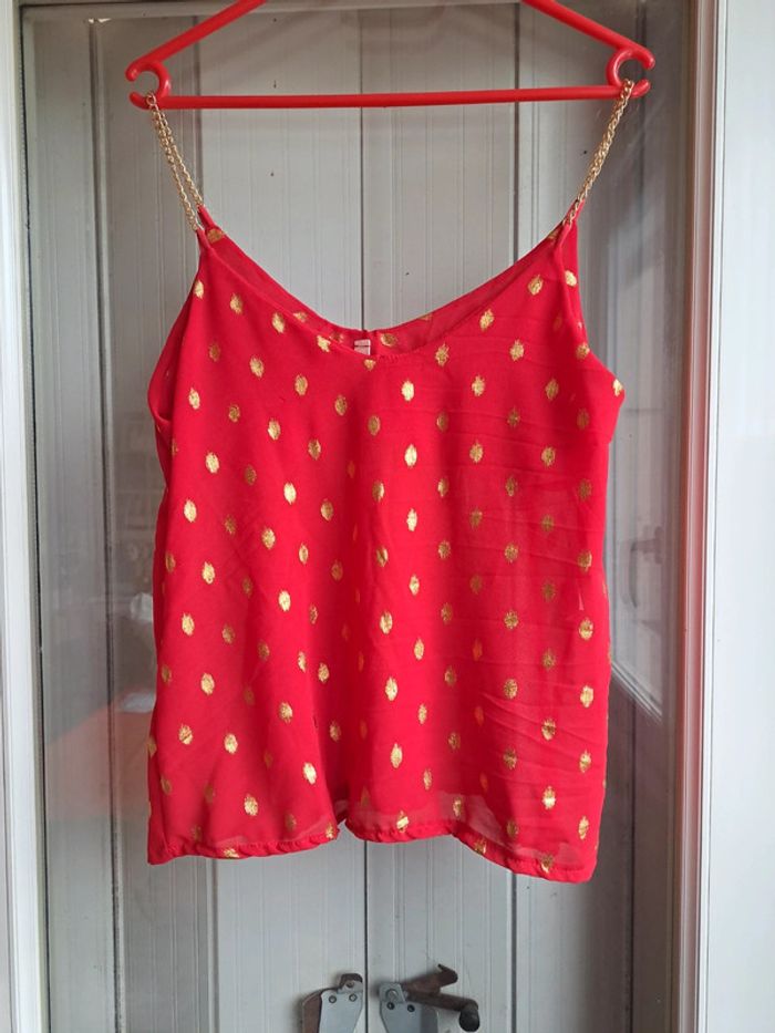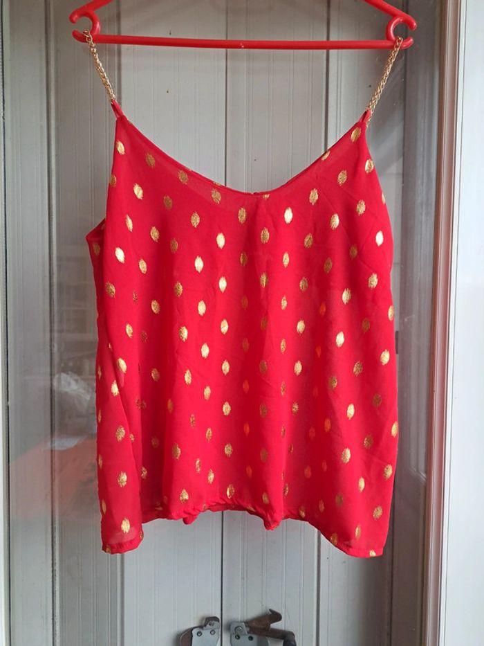 #pitchoune711femmetu Débardeur femme Taille unique Marque NEW COLLECTION Couleur rouge et doré Bretelles en acier doré Je vends également le même mais en marron. Jamais porté donc État neuf