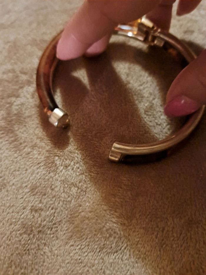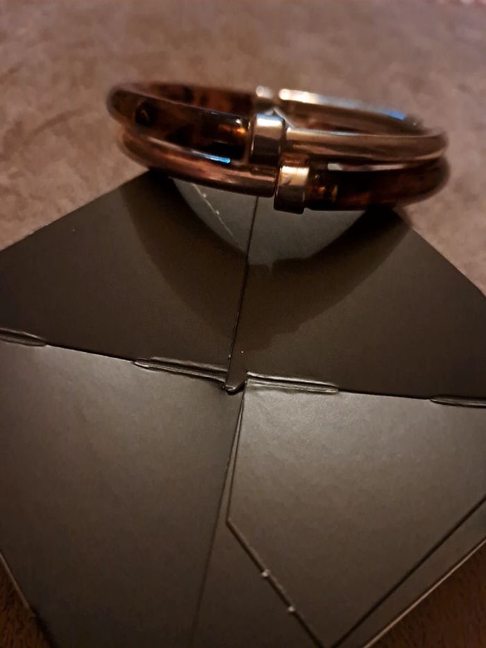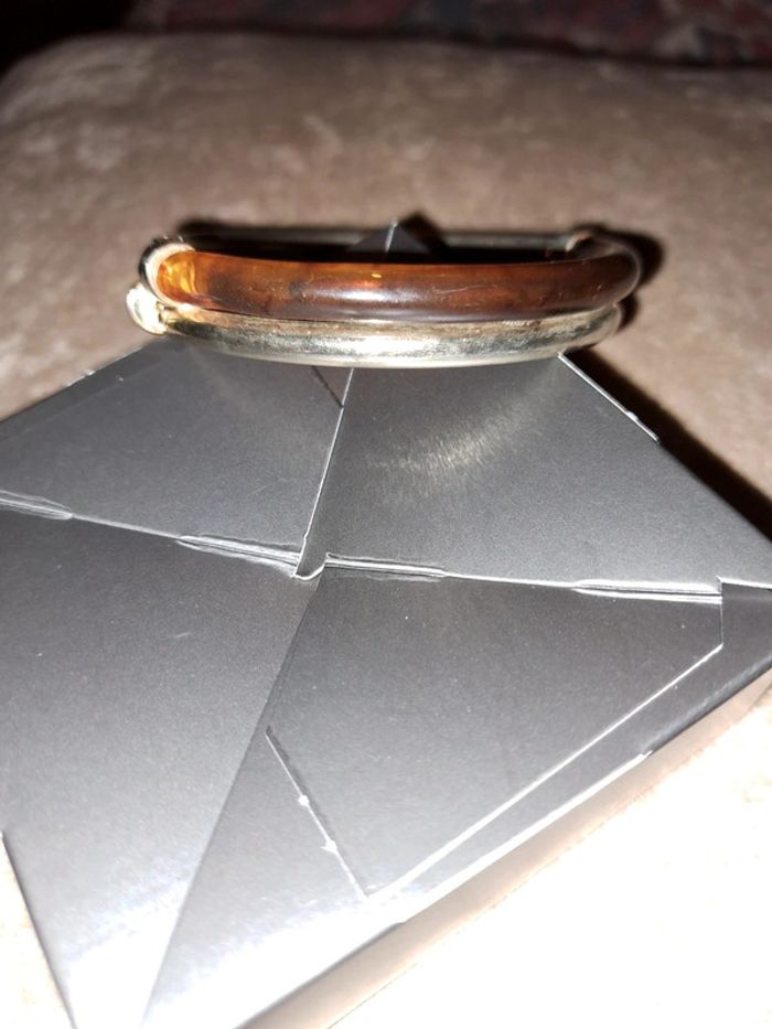 #pitchoune711accessoire Bracelet femme Métal et plastique Effet double Bracelet Doré et marron Fermeture et ouverture avec un système de ressort État impeccable