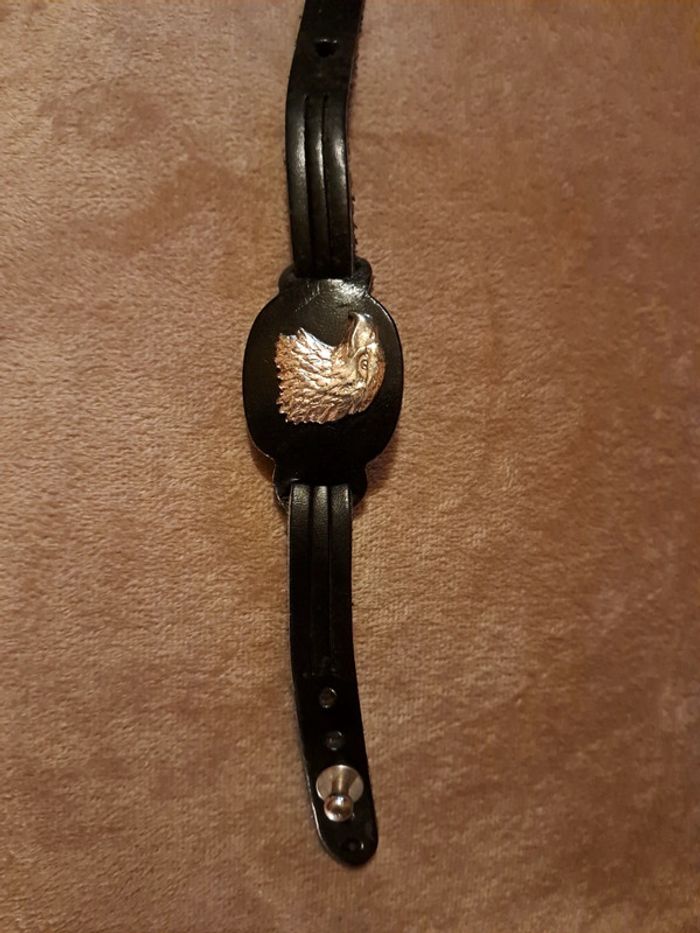 #pitchoune711accessoire Bracelet mixte Cuir Tête d'aigle Bracelet réglable Couleur noir État impeccable