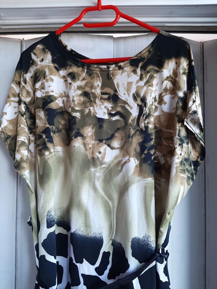 #pitchoune711femmetu Tee-shirt femme Taille unique mais plutôt grande taille Couleur kaki, noir et blanc Manches courtes État impeccable