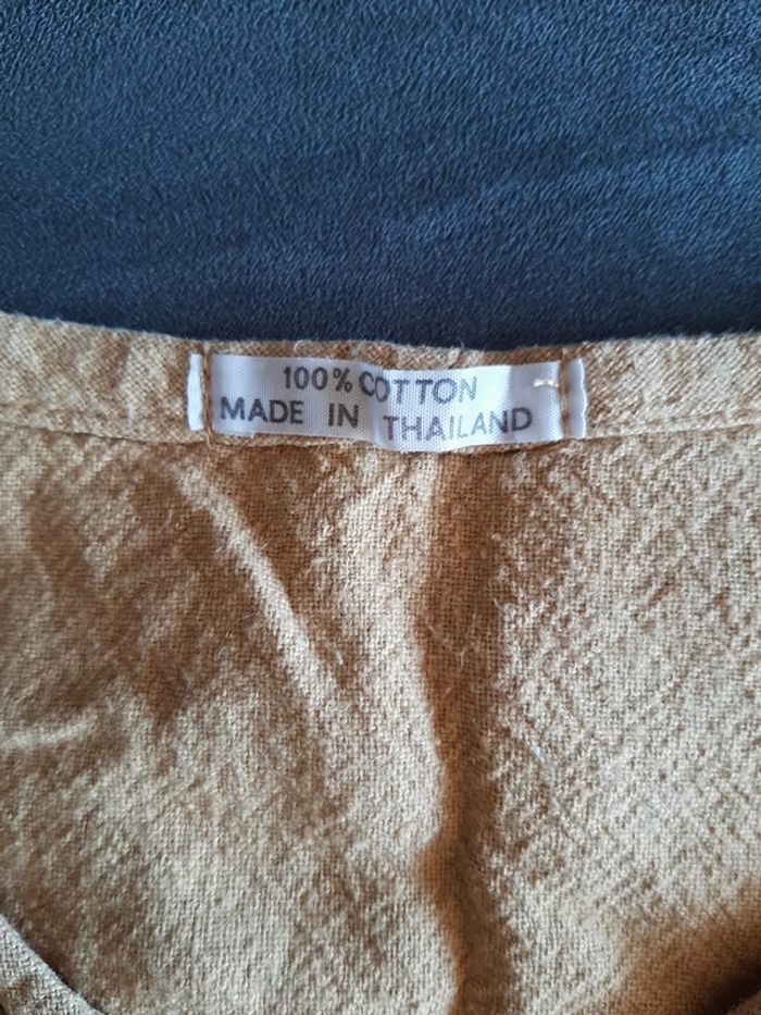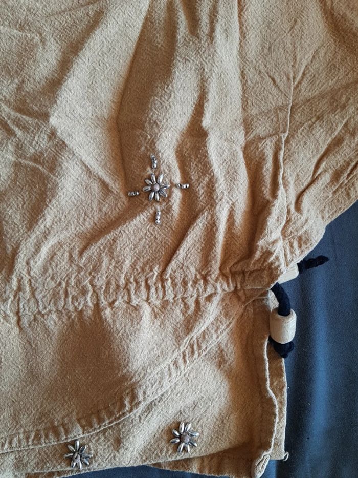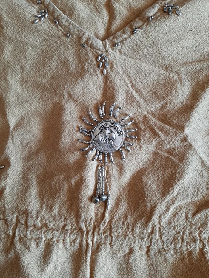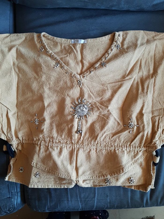 #pitchoune711femmetu Tee-shirt femme Taille unique Couleur marron Perles brodées Possibilité de resserrer à la taille avec un cordon 100% coton État impeccable
