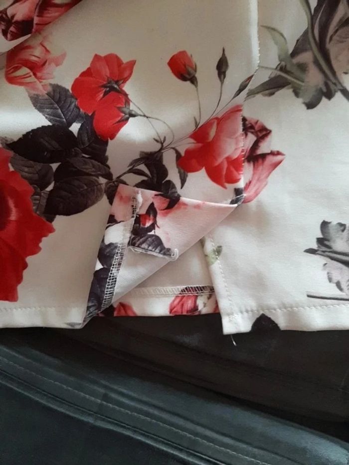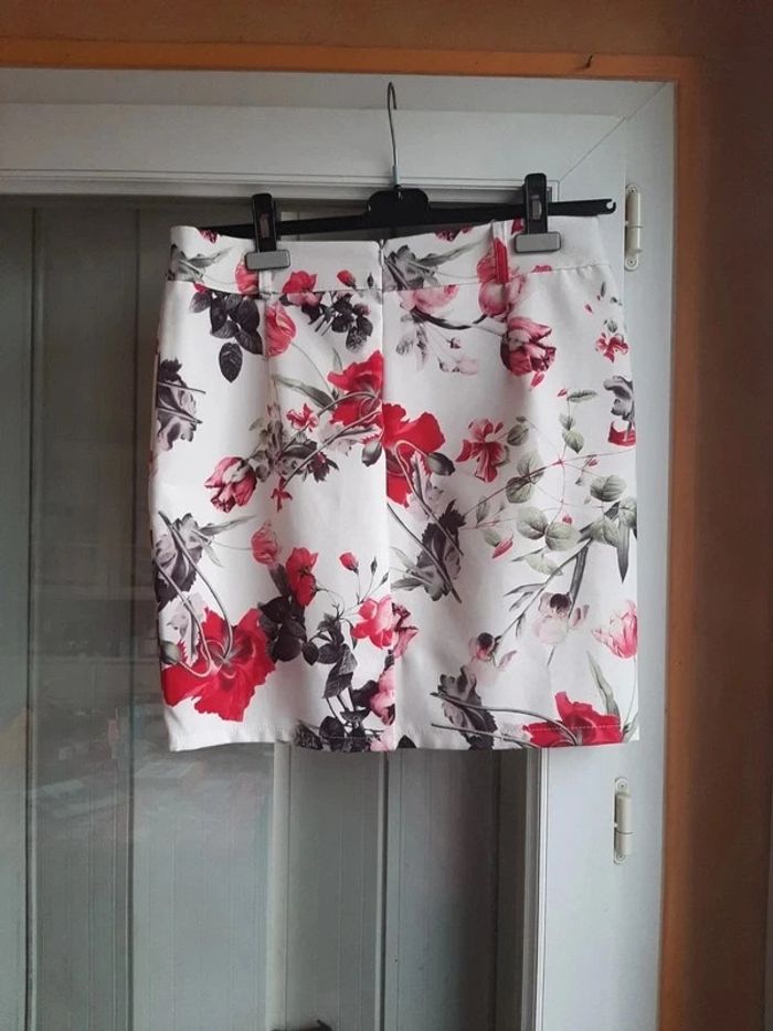 #pitchoune711femmeL Jupe femme Taille 40 (plus d'étiquette) Courte Coupe droite Blanche avec motifs fleurs Fermeture éclair dans le dos Petite ouverture dans le bas du dos Coulants pour ceinture État impeccable sauf quelques peluches (voir dernière photo)