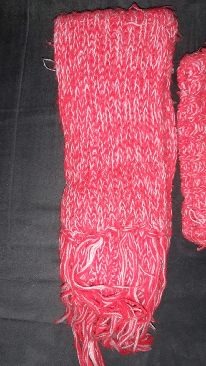 #pitchoune711ACCESSOIRE Ensemble 2 pièces femme Bonnet et écharpe Couleur rouge et blanc État impeccable
