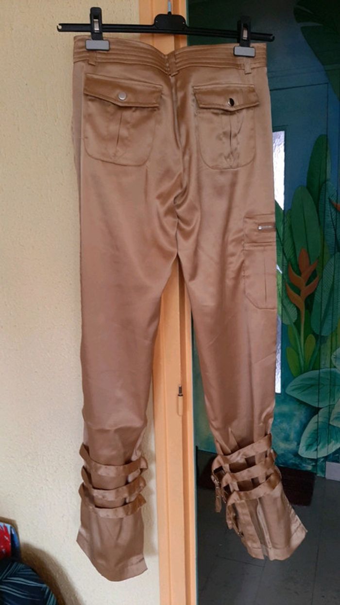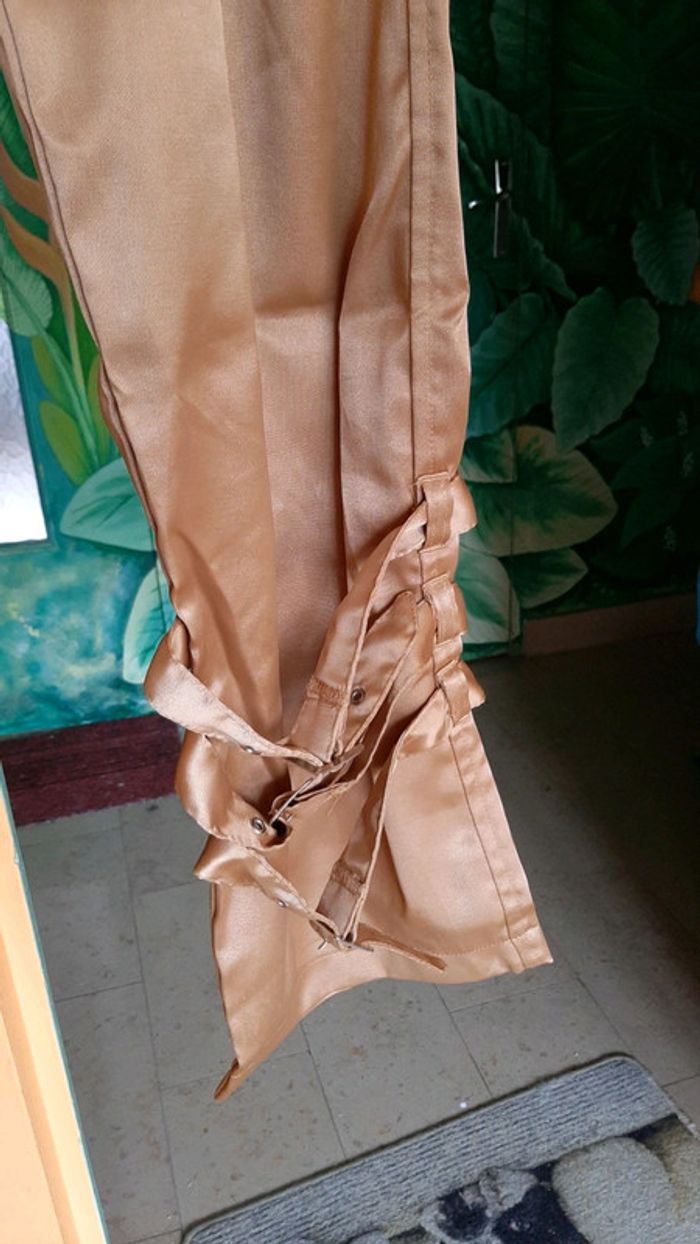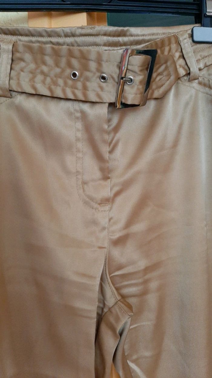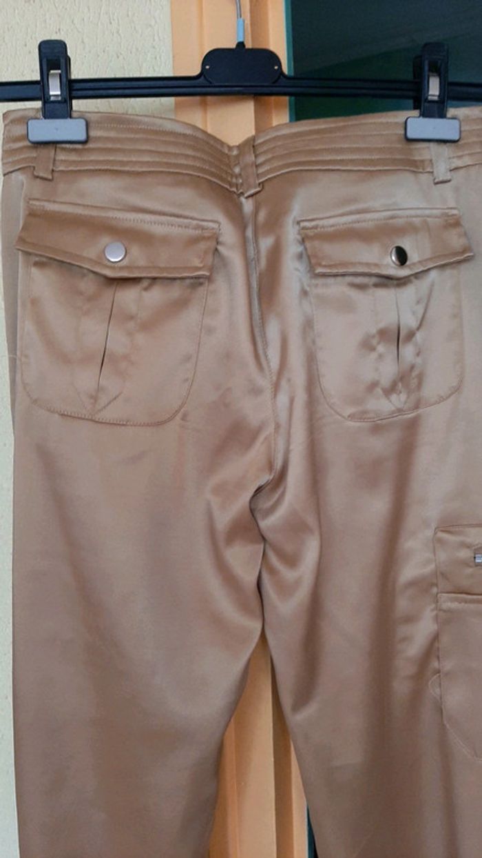 #pitchoune711FEMMEL Pantalon femme Taille L Couleur or Bouton et fermeture éclair Fausse ceinture à la taille 2 poches devant, 1 sur la cuisse droite et 2 derrière État impeccable