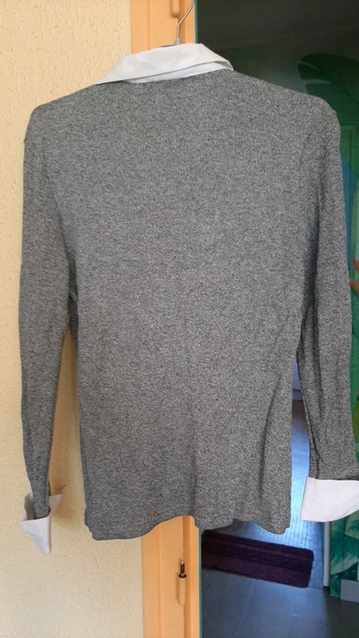 #pitchoune711FEMMEL Chemisier femme Taille 40 Marque PIMKIE Couleur gris Manches et col blanc Bi matière État impeccable