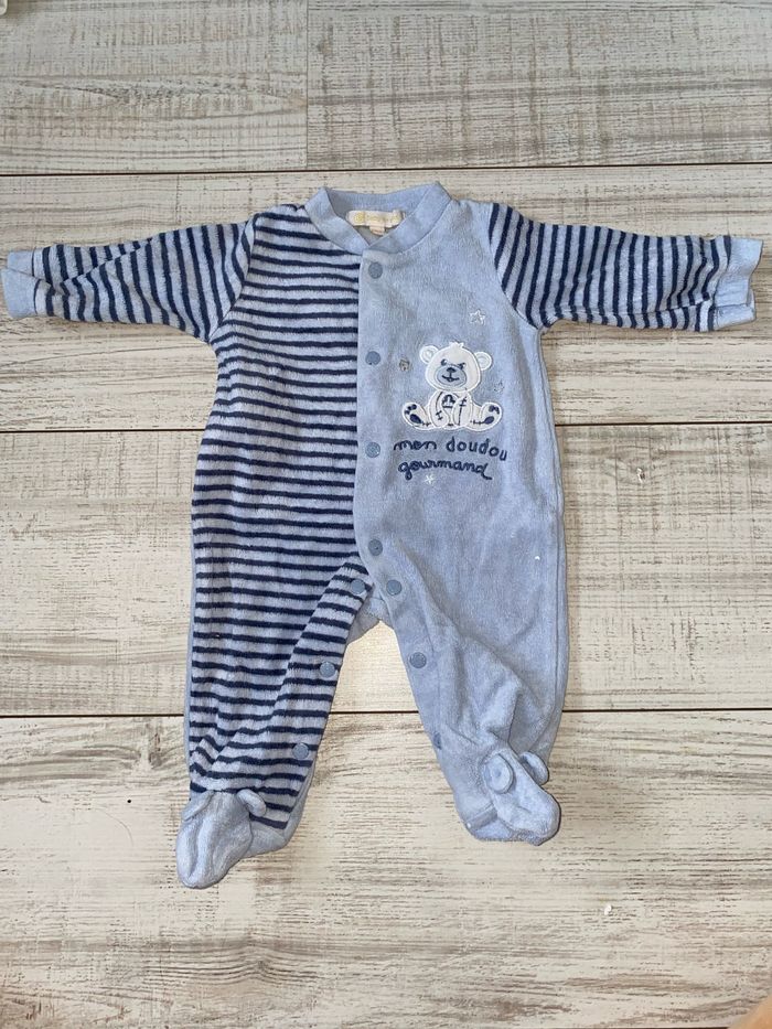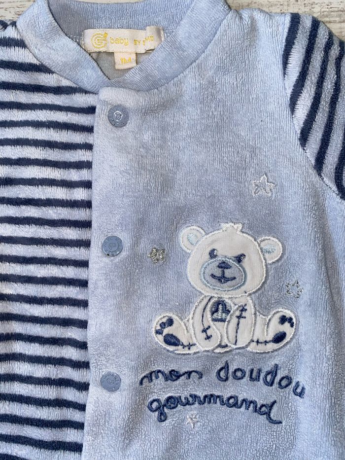 Grenouillère / Pyjama Motif : ourson Matière : velours, hiver Âge : 1 mois / 56 cm Utilisation : pressions devant Marque : Gémo #tiffanie4439_1mois